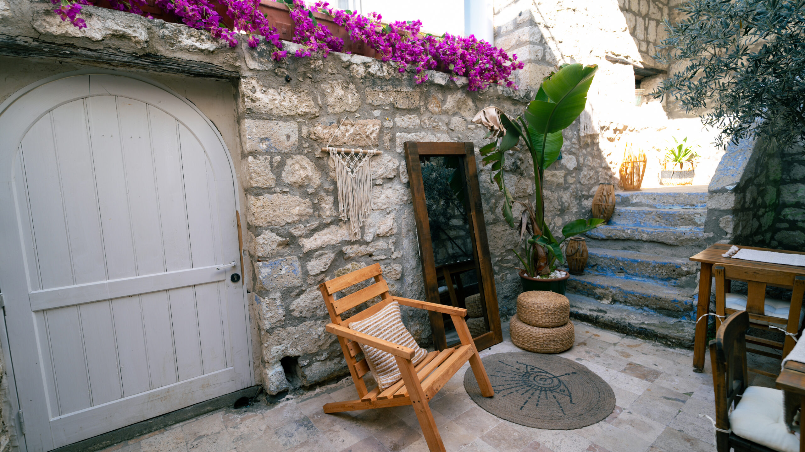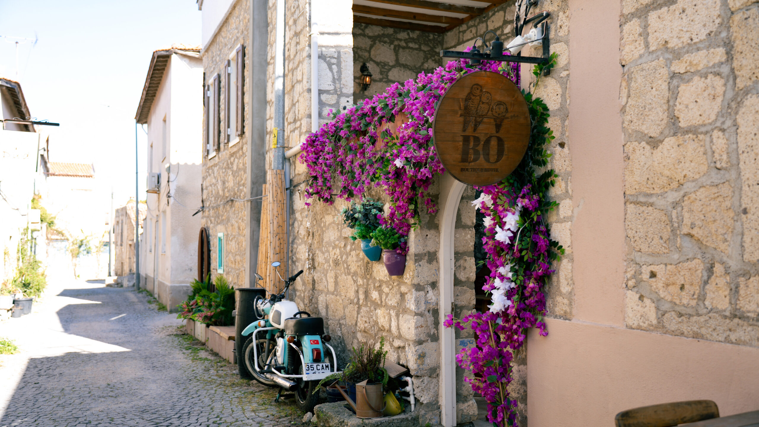 Taş duvarlara sinmiş zaman, begonvillerin gölgesinde yeniden hayat bulur.